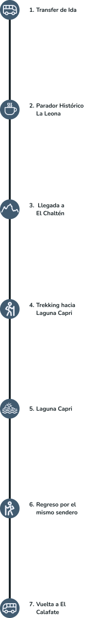 Al retornar al inicio del sendero del Trekking Laguna Capri, nuestro chofer va a estar esperándonos para llevarnos de regreso de nuevo a El Calafate. Te llevamos nuevamente a tu alojamiento para que puedas descansar luego de este día de pura aventura. Vas a cerrar esta experiencia con la sensación de haber conocido El Chaltén de la mejor manera posible: caminando, disfrutando y entendiendo por qué este rincón de la Patagonia es un destino imperdible para los amantes de la naturaleza.