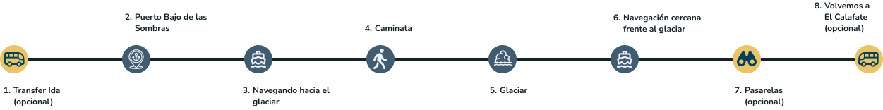 ⏳ Duración aproximada: 3 – 4 horas (sin traslados) / 8 horas (con traslados incluidos desde El Calafate, regreso aproximadamente a las 17:00 hs).