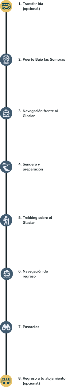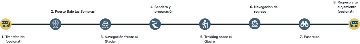 ⏳ Duración aproximada: 5 horas (sin traslados) / 9 horas (con traslados incluidos desde El Calafate y tiempo libre para las pasarelas).